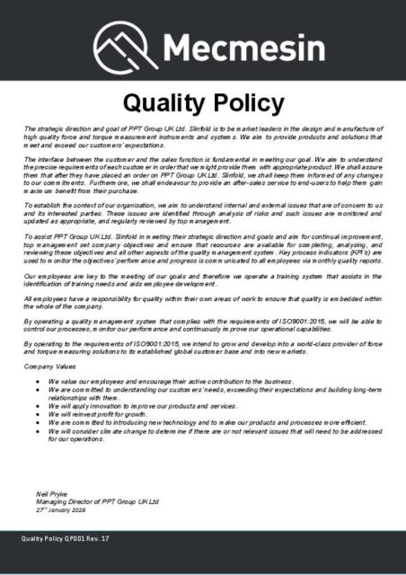 Mecmesin - Quality Policy